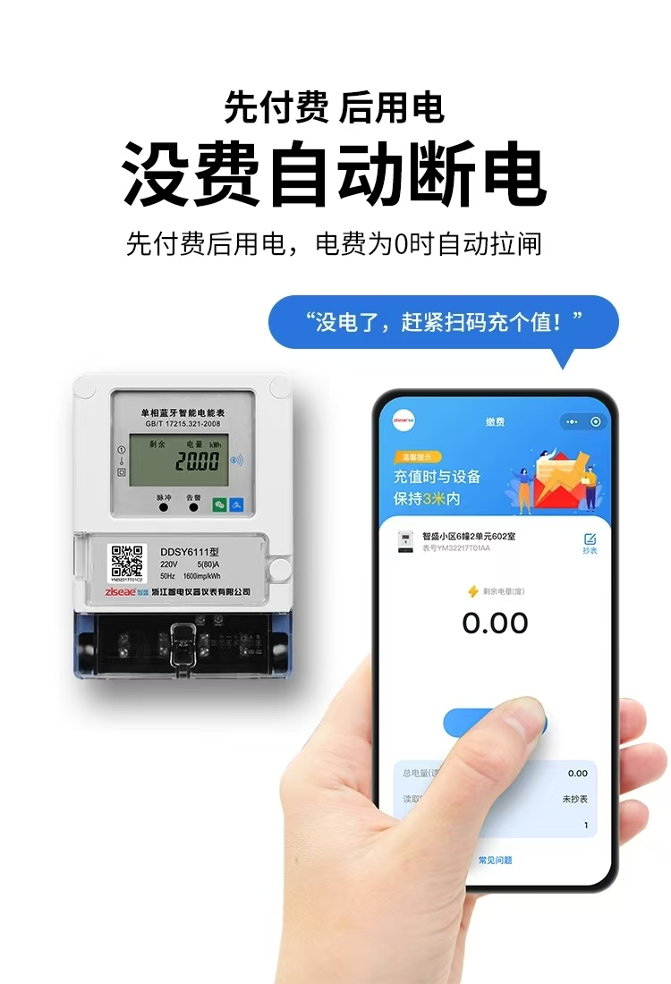 單相導(dǎo)軌藍(lán)牙掃碼充值電表