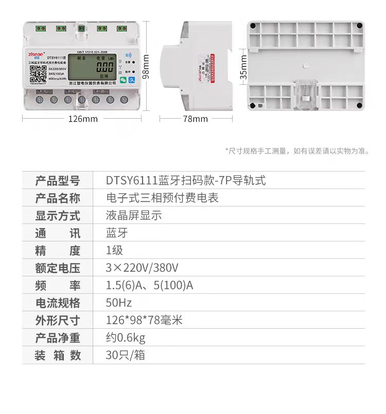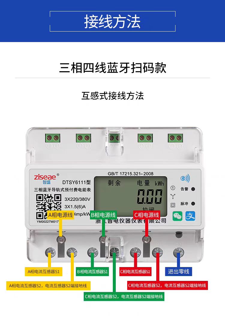 三相導(dǎo)軌式藍(lán)牙掃碼充值電表