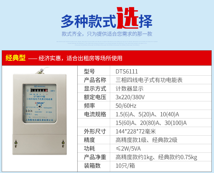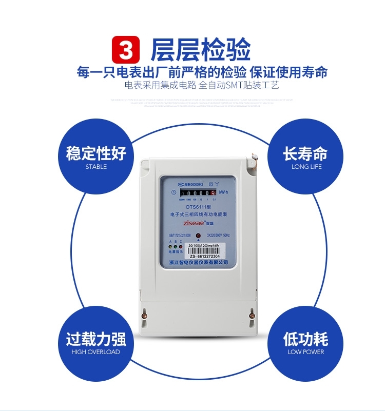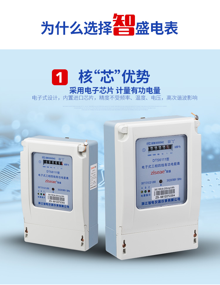 DTS6111型三相四線和DSS6111型三相三線兩種型號三相電子式有功電能表,內部運用了集成電路在經(jīng)過SMT工藝生產(chǎn)制作而成。結構設計合理,制作工藝先進。跟傳統(tǒng)的電能計量表對比,三相電子式有功電能表的測量準確度高、性能可靠、節(jié)能。